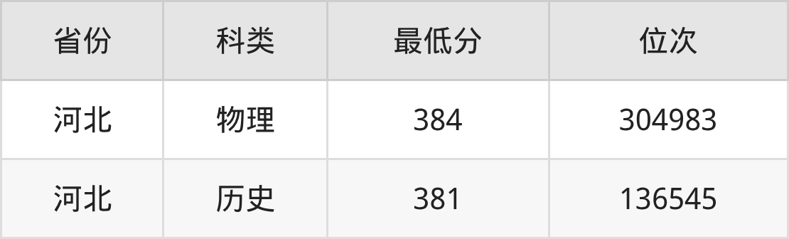 2025年河北对外经贸职业学院应用德语专业在河北录取最低分:物理组是384分,对应位次排名是304983名;历史组是381分,对应位次排名是136545名。