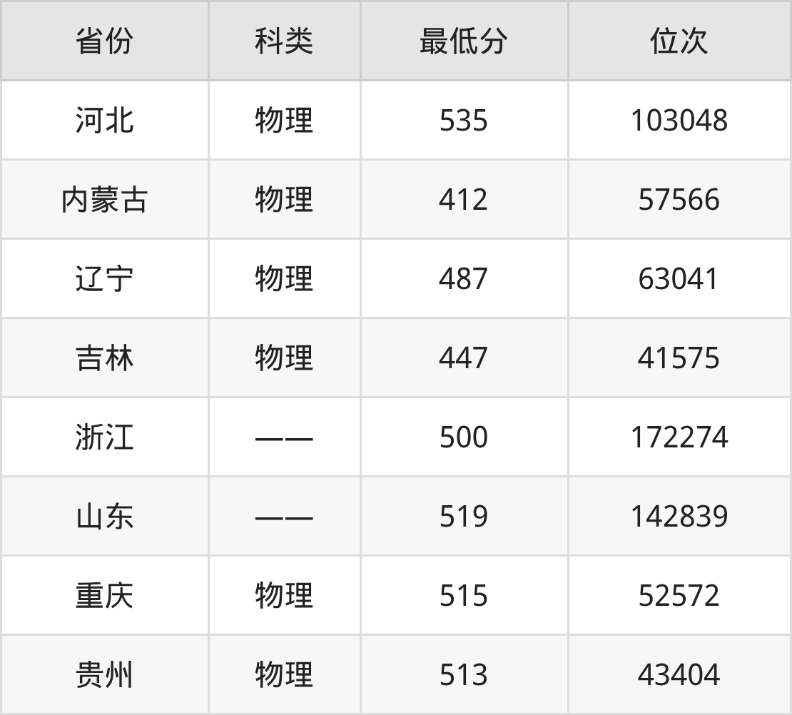 | 省份 | 首选 科目 | 招生名额 |