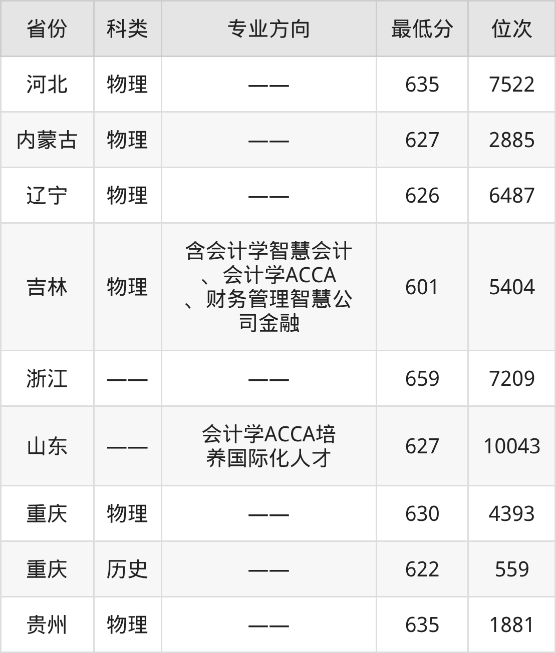 2025年湖南大学会计学专业在重庆录取最低分:物理组是630分,对应位次排名是4393名;历史组是622分,对应位次排名是559名。