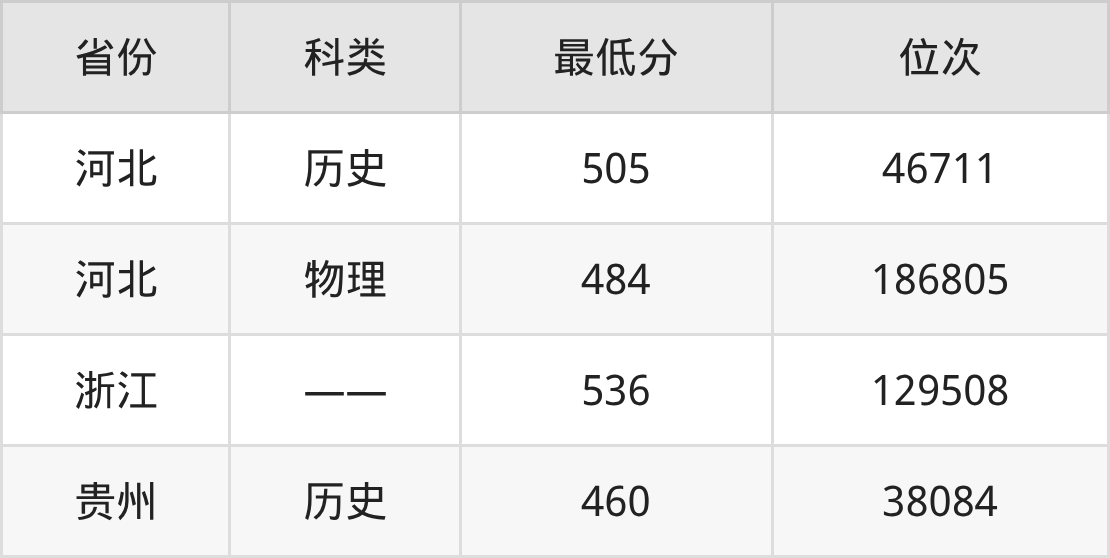 | 省份 | 首选 科目 | 招生名额 |
