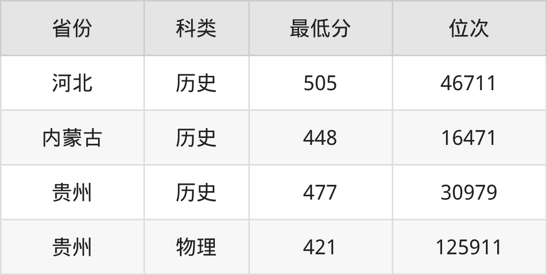 2025年荆州学院小学教育专业在贵州录取最低分:历史组是477分,对应位次排名是30979名;物理组是421分,对应位次排名是125911名。