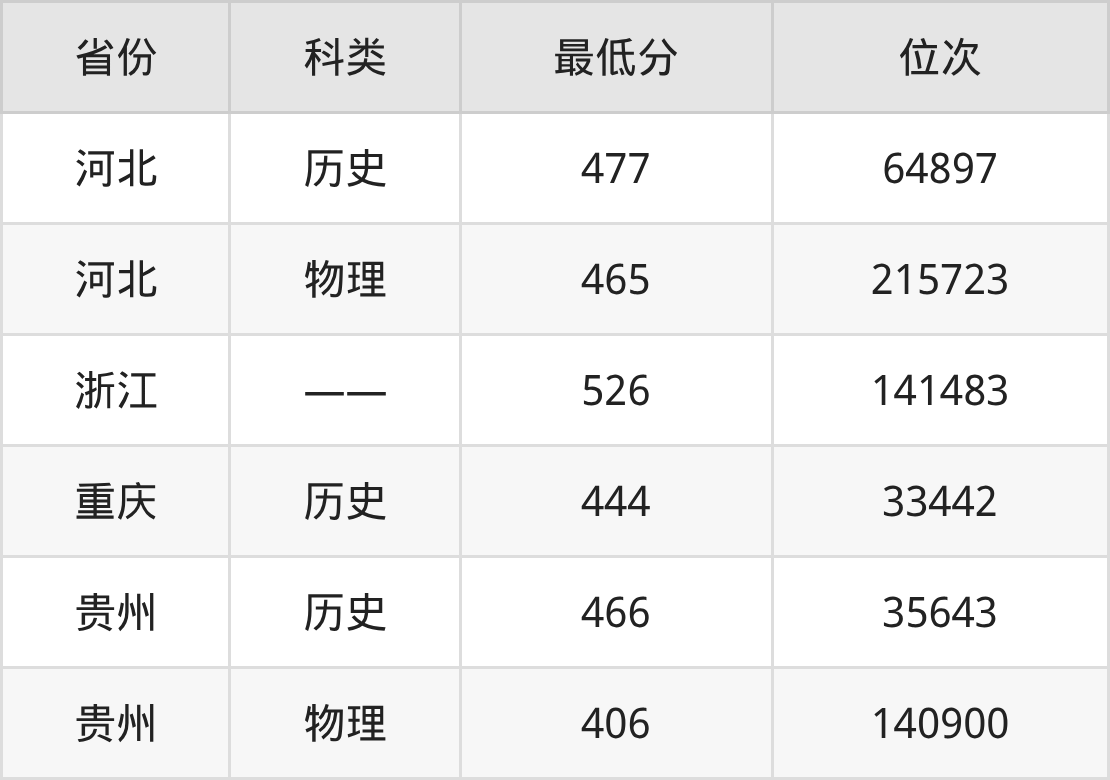 2025年桂林信息科技学院人力资源管理专业在河北录取最低分:历史组是477分,对应位次排名是64897名;物理组是465分,对应位次排名是215723名。