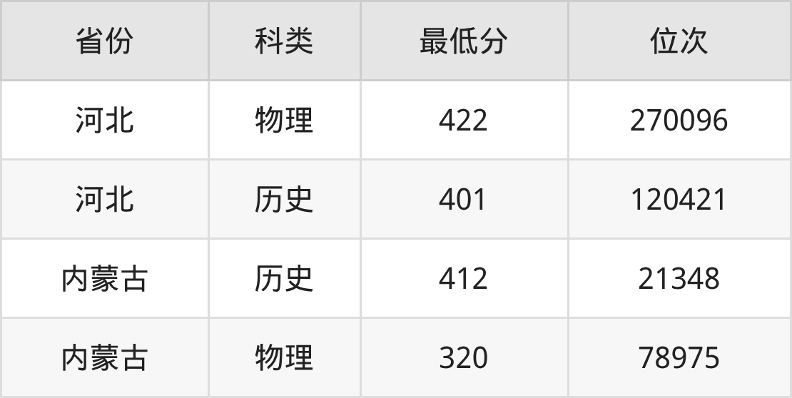 2025年鄂尔多斯职业学院机电一体化技术专业在河北录取最低分:物理组是422分,对应位次排名是270096名;历史组是401分,对应位次排名是120421名。