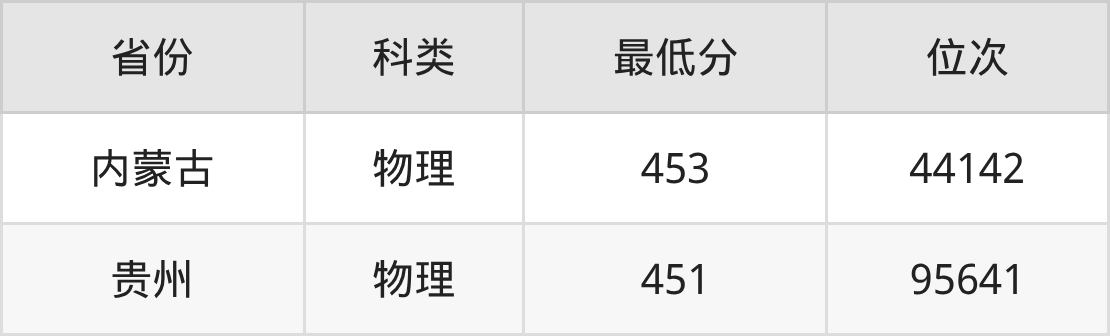 2025年内蒙古民族大学药物制剂专业在贵州录取最低分:451分,对应位次排名是95641名。