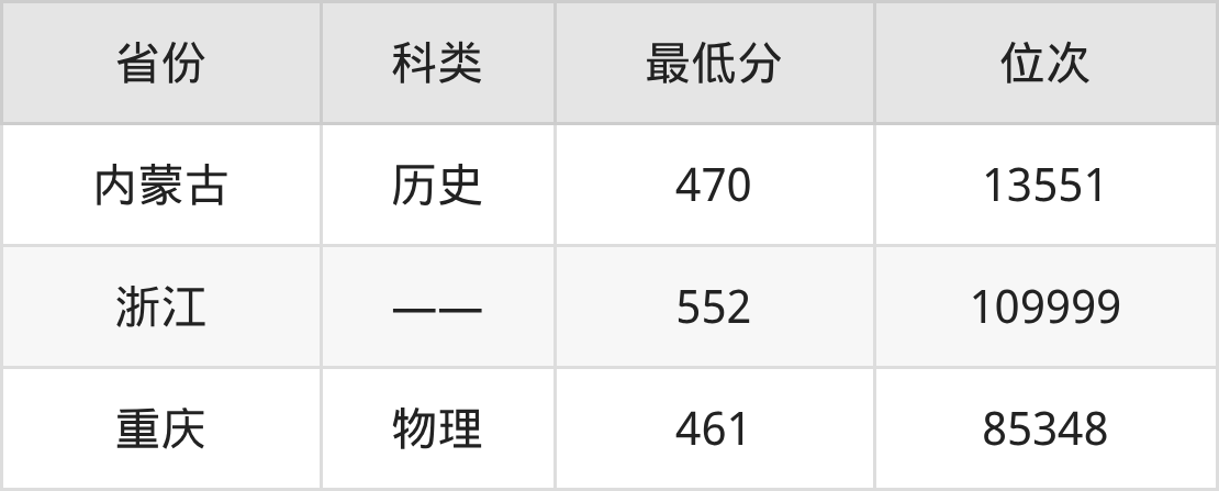 | 省份 | 首选 科目 | 招生名额 |