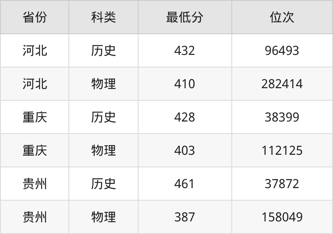 2025年昭通卫生职业学院医学影像技术专业在贵州录取最低分:历史组是461分,对应位次排名是37872名;物理组是387分,对应位次排名是158049名。