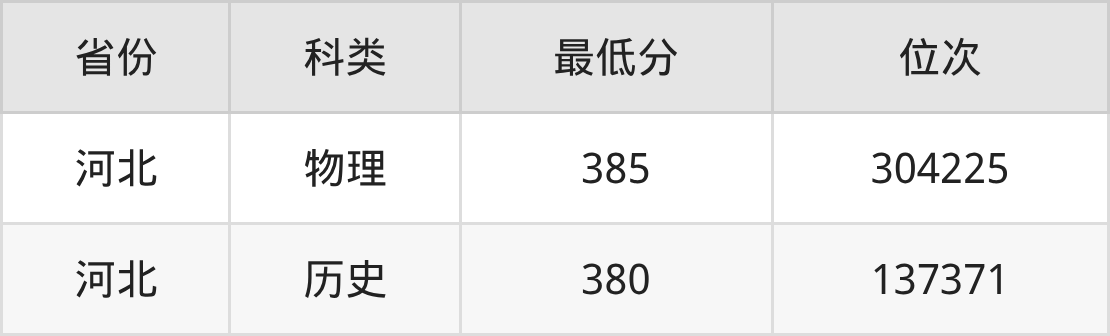 2025年河北对外经贸职业学院应用俄语专业在河北录取最低分:物理组是385分,对应位次排名是304225名;历史组是380分,对应位次排名是137371名。