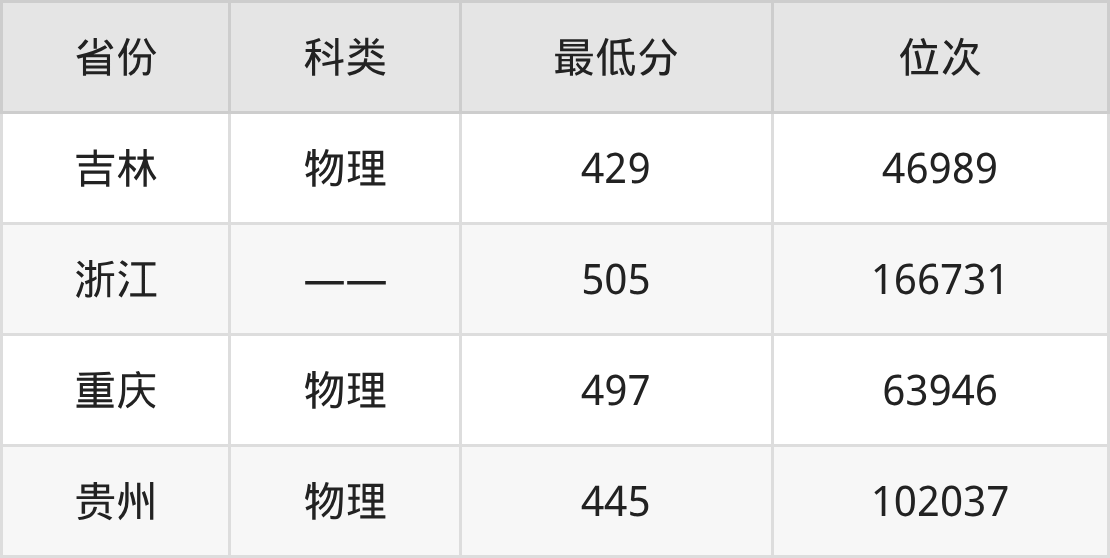 2025年吉林工商学院食品科学与工程专业在贵州录取最低分:445分,对应位次排名是102037名。