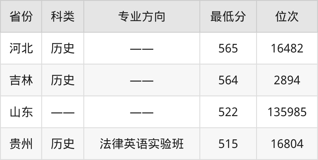 2025年山东政法学院英语专业在贵州录取最低分:515分,对应位次排名是16804名。