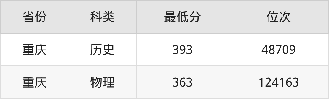 2025年四川化工职业技术学院大数据与会计专业在重庆录取最低分:历史组是393分,对应位次排名是48709名;物理组是363分,对应位次排名是124163名。