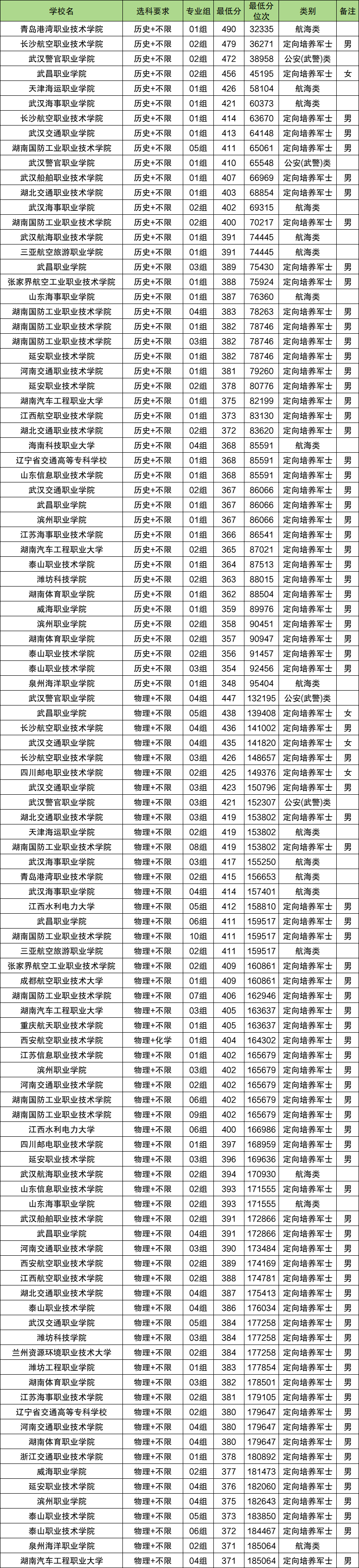 专科提前批航海类最低分数线:历史类348分、物理类371分;