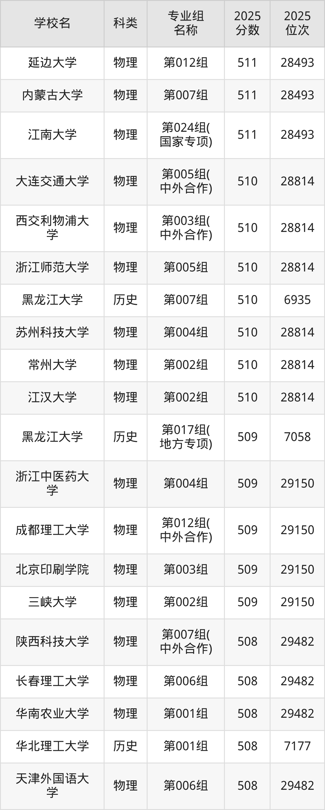 除上述院校外,514分可上的公办一本大学还有安徽财经大学(514分,位次49664名)、黑龙江大学(513分,位次50149名)。