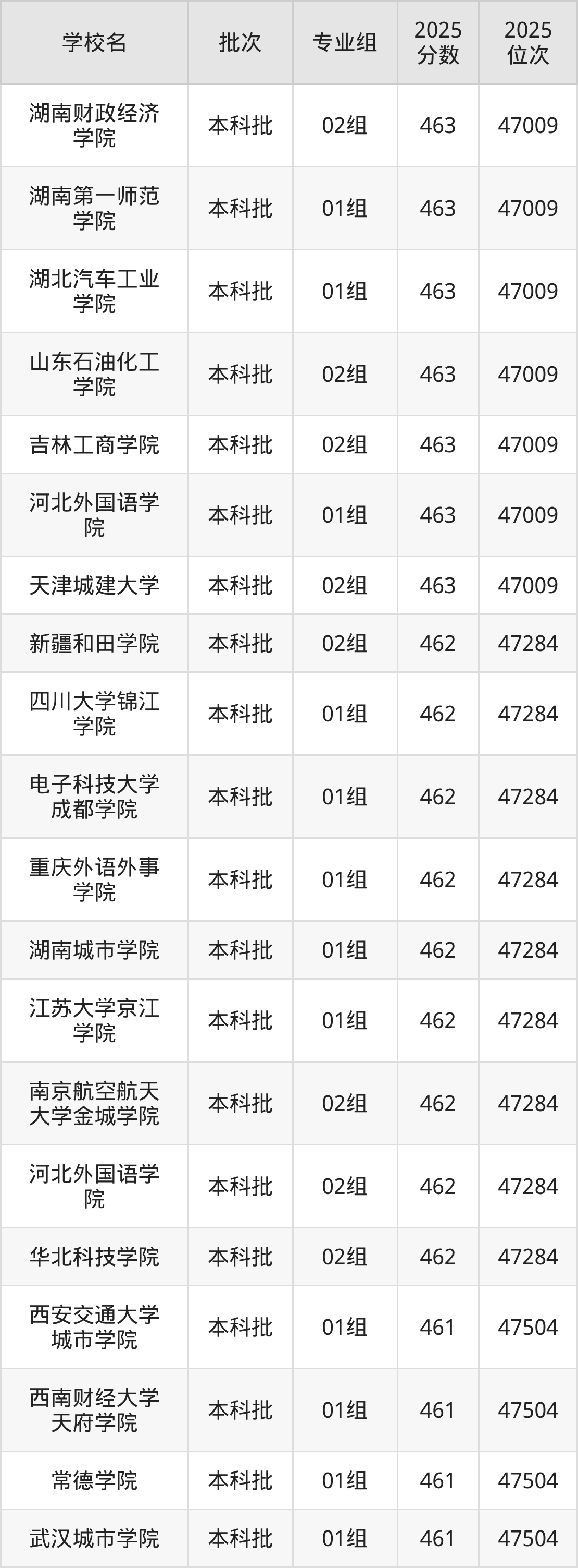 这些都是2026年高考47505名~47754名考生可以报考的大学,更多学校名单如下表所示: