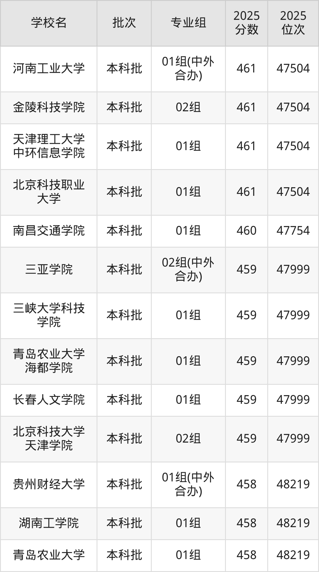 2025年北京高考460分(47505名~47754名)能上的大学有南昌交通学院01组。