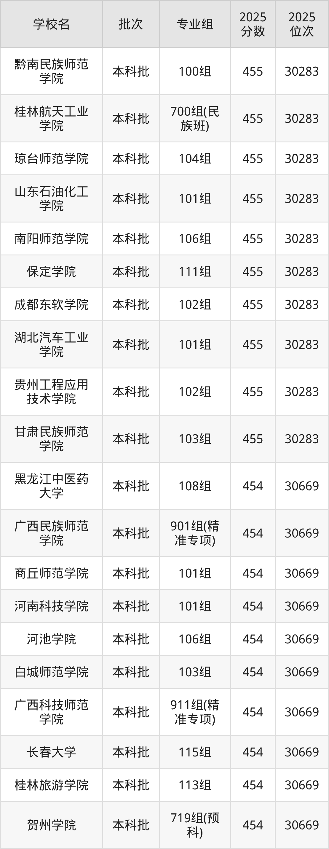 这些都是2026年高考历史类30670名~31058名考生可以报考的大学,更多学校名单如下表所示: