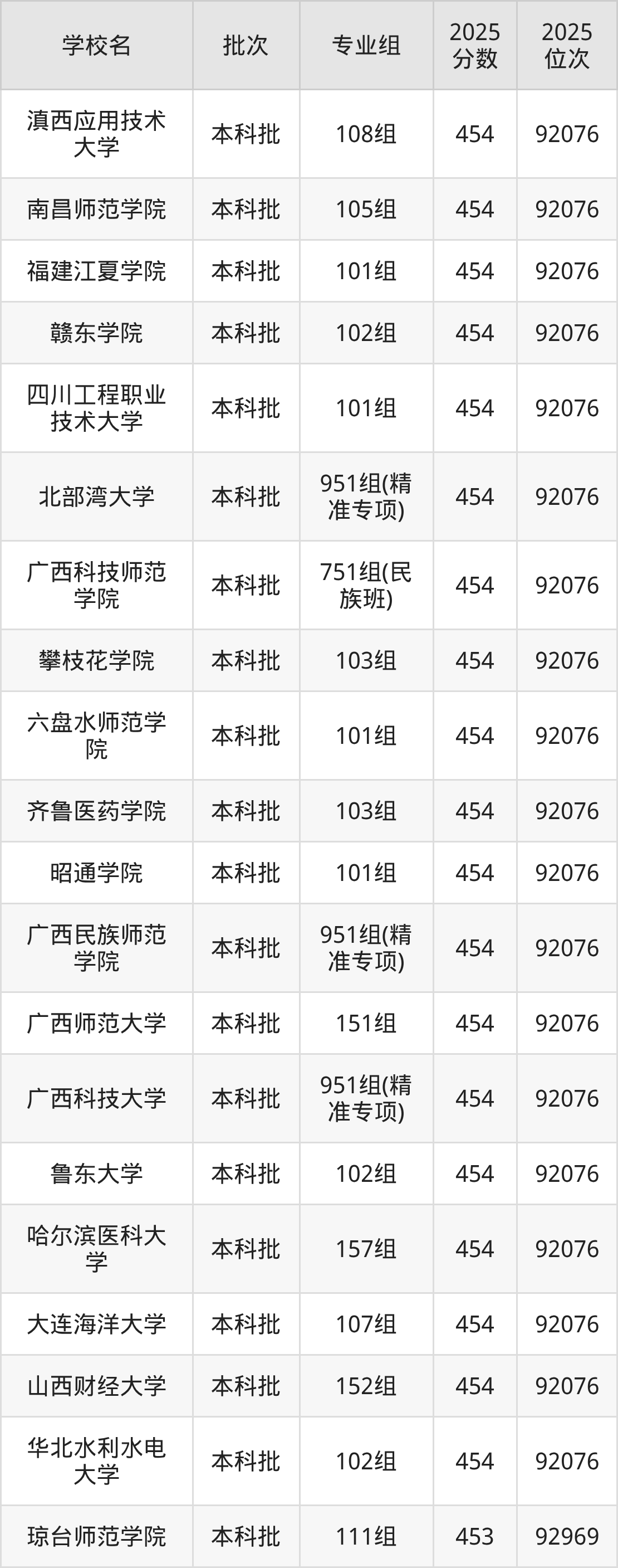 二、广西453分位次排名能上的大学