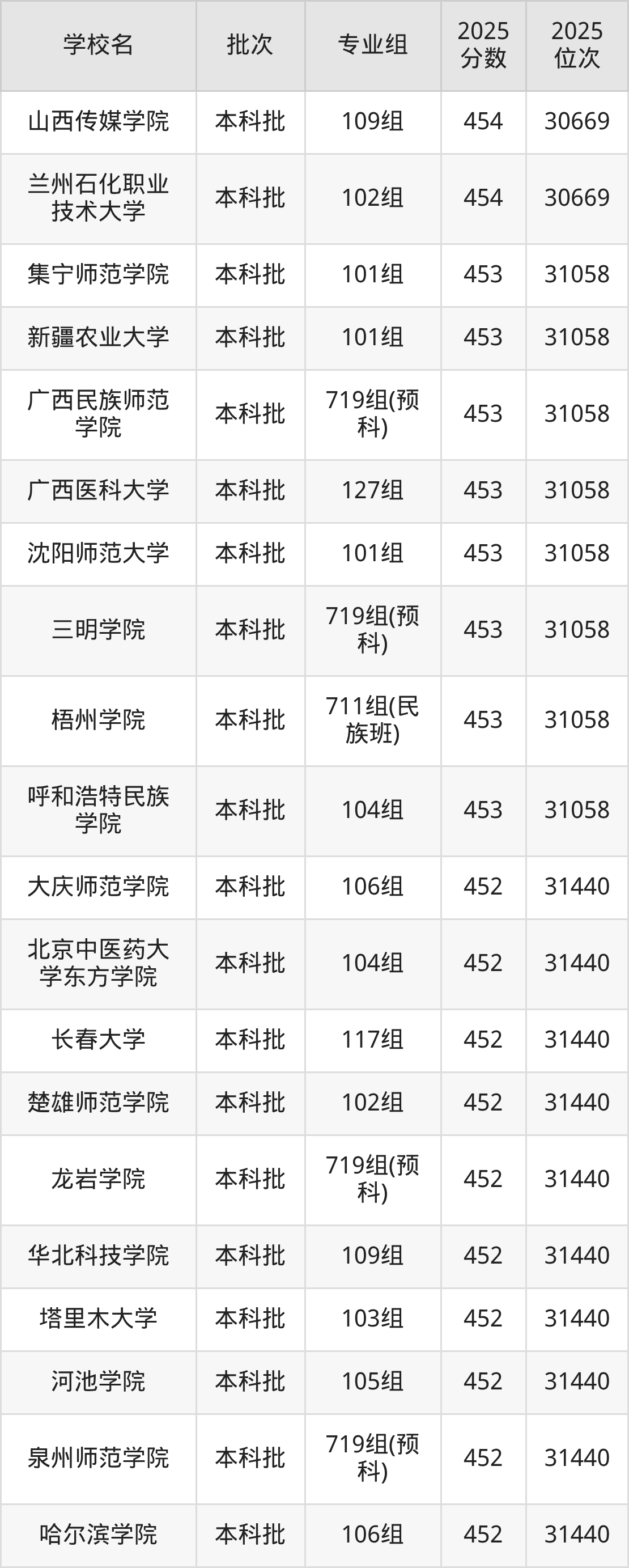 另外录取位次低于该区间(较稳妥)的有北京中医药大学东方学院104组(31440名)、长春大学117组(31440名)等;录取位次高于该区间(可冲)的有桂林旅游学院113组(30669名)、河池学院106组(30669名)等。