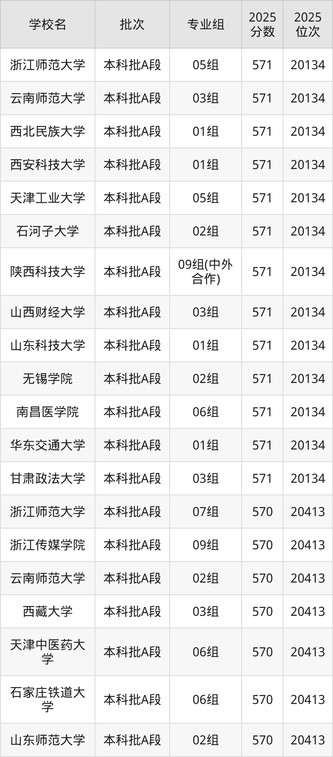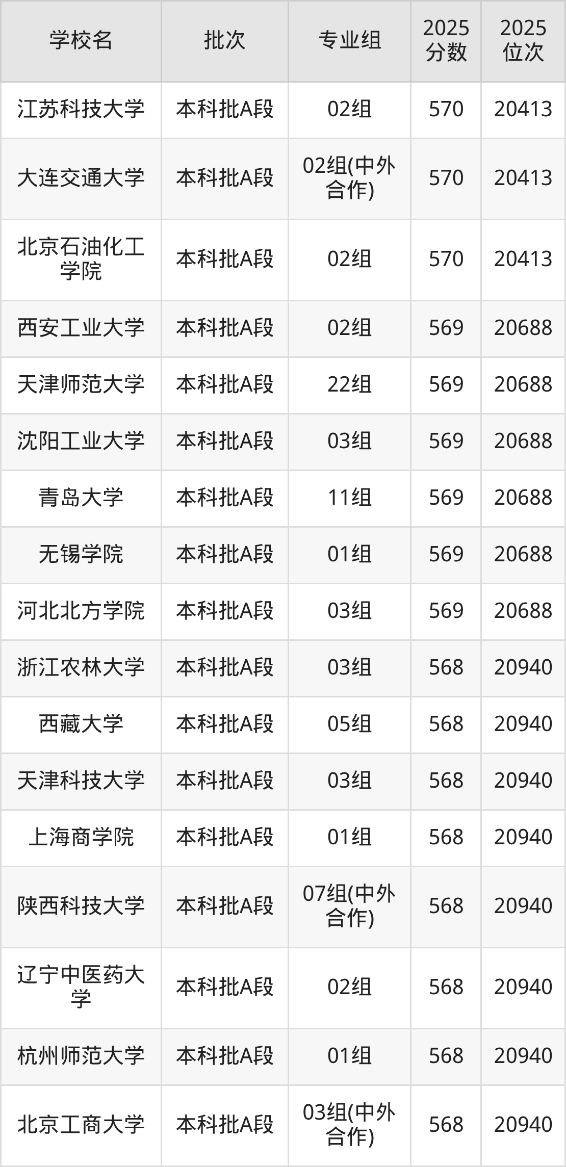 这些都是2026年高考20414名~20688名考生可以报考的大学,更多学校名单如下表所示: