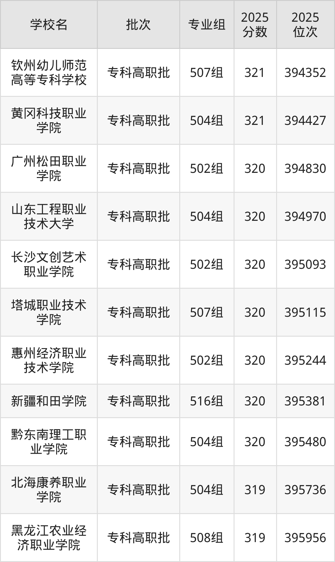 2025年广东高考物理类320分(394815名~395472名)能上的大学有新疆和田学院516组、山东工程职业技术大学504组、惠州经济职业技术学院502组、广州松田职业学院502组等。