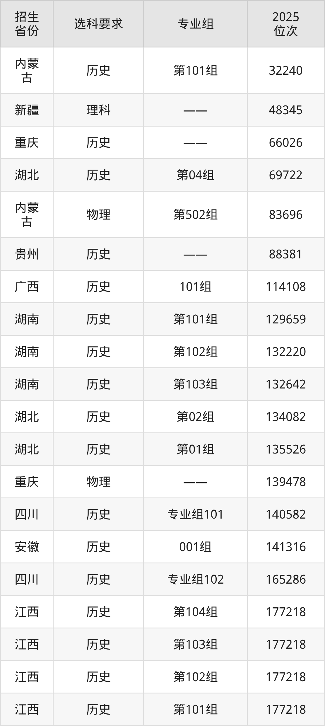 贵州工商职业大学2025年在全国各省的位次差异较大,最高位次是32240位(内蒙古历史类)、最低位次是677426位(山东)。各省具体位次请看下图: