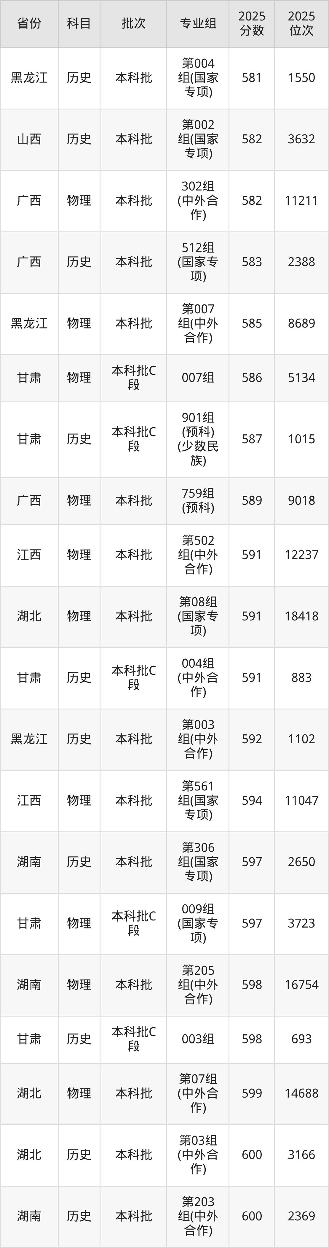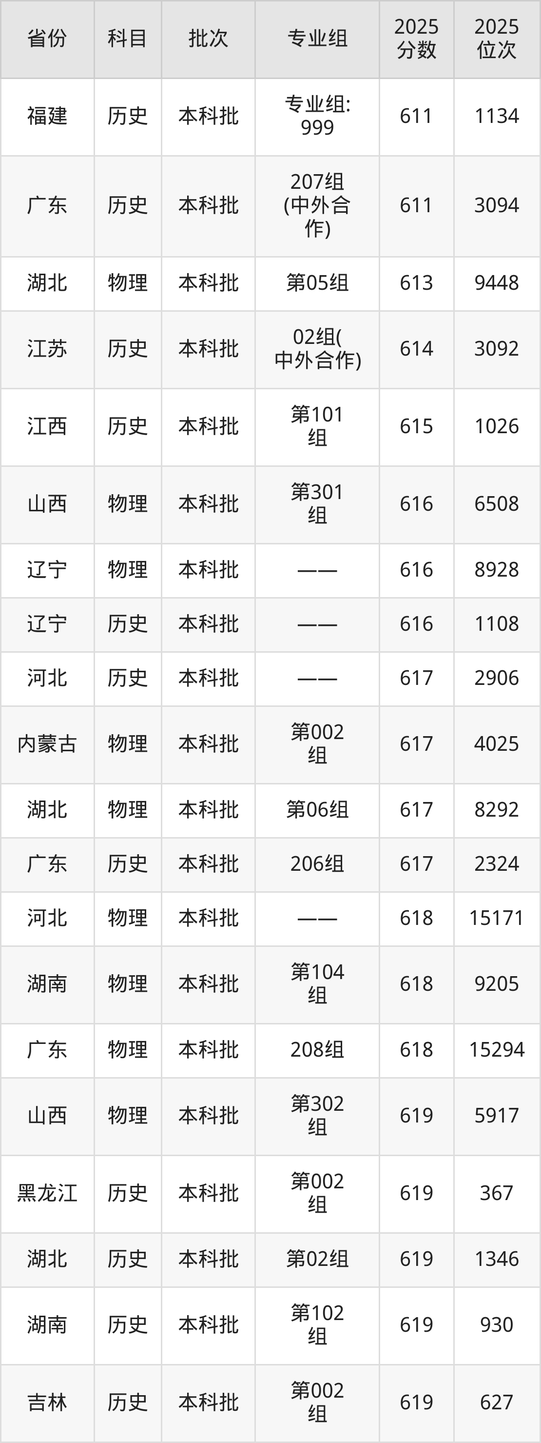 2025年中央财经大学在各省普通批录取分数线一览表: