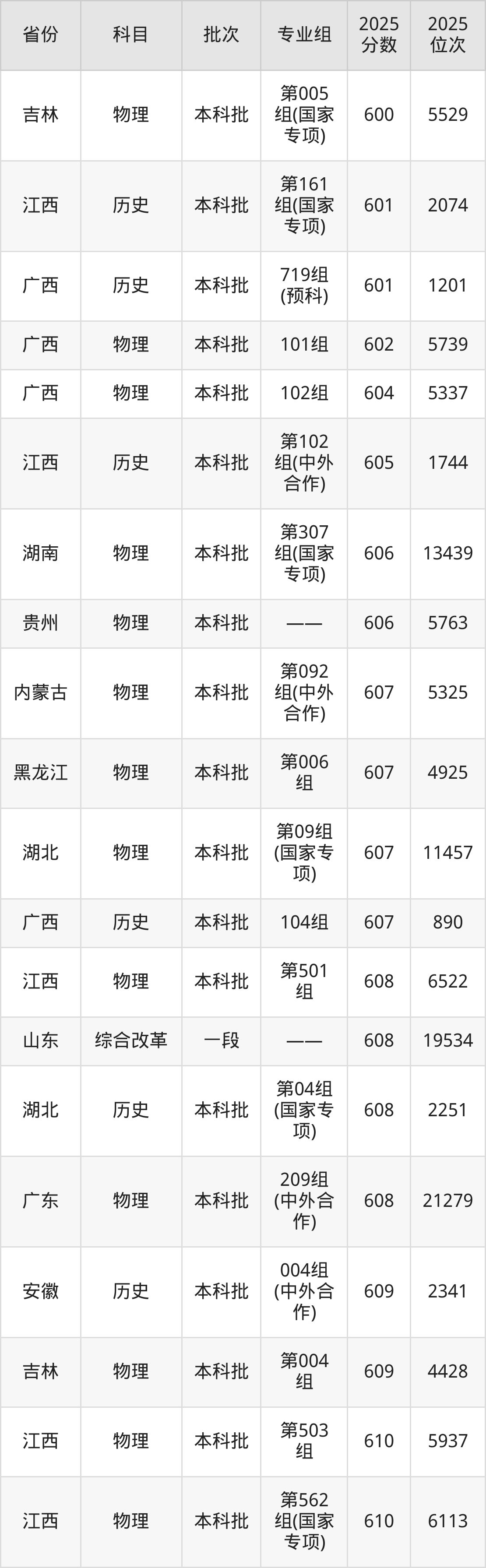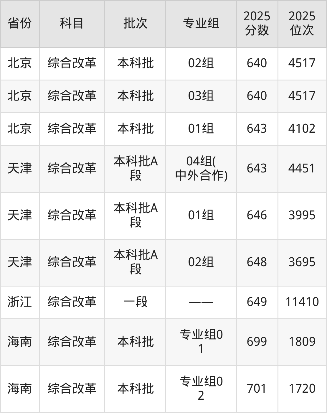最高录取分数线是701分,对应位次是1720名,招生地区为海南。