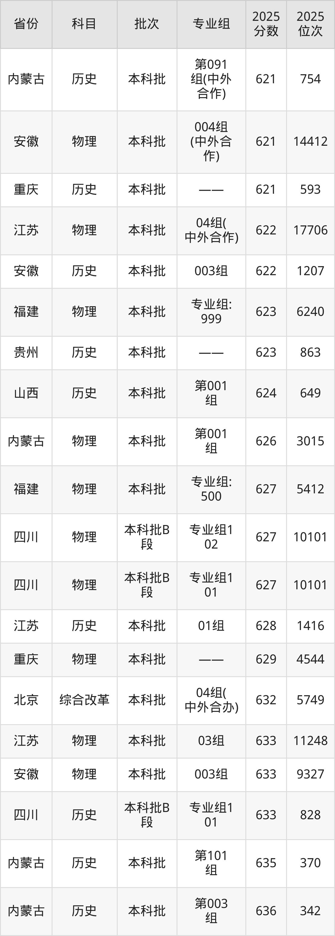 最高录取分数线是636分,对应位次是342名,招生地区为内蒙古。