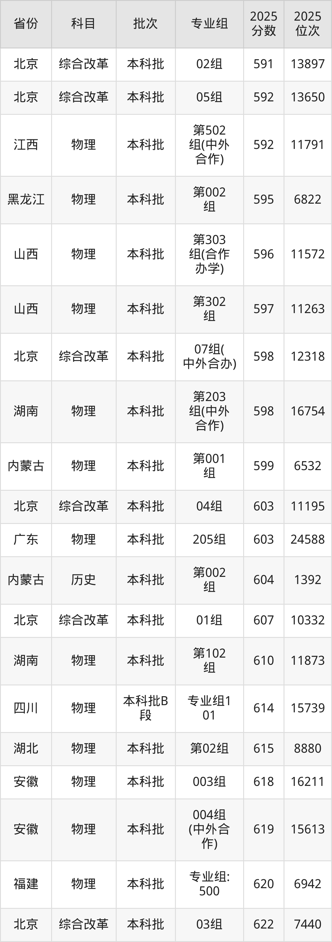 2025年北京工业大学在各省普通批录取分数线一览表: