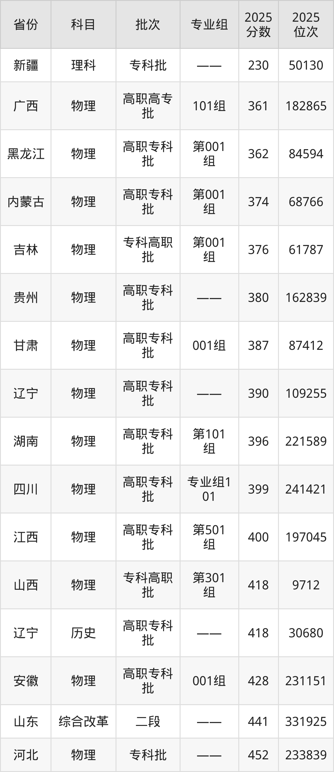 2025年辽宁轨道交通职业学院在各省物理类和理科的录取分数线位于230分-452分之间。