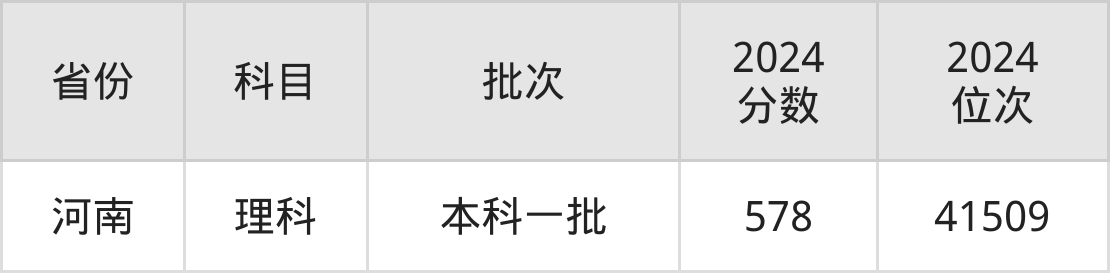 最低录取分数线是578分,对应位次是41509名,招生地区为河南。