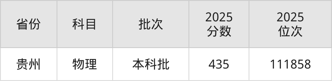 最低录取分数线是435分,对应位次是111858名,招生地区为贵州。