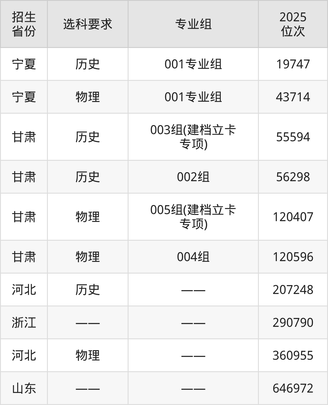 兰州科技职业学院2025年在全国各省的位次差异较大,最高位次是19747位(宁夏历史类)、最低位次是646972位(山东)。各省具体位次请看下图: