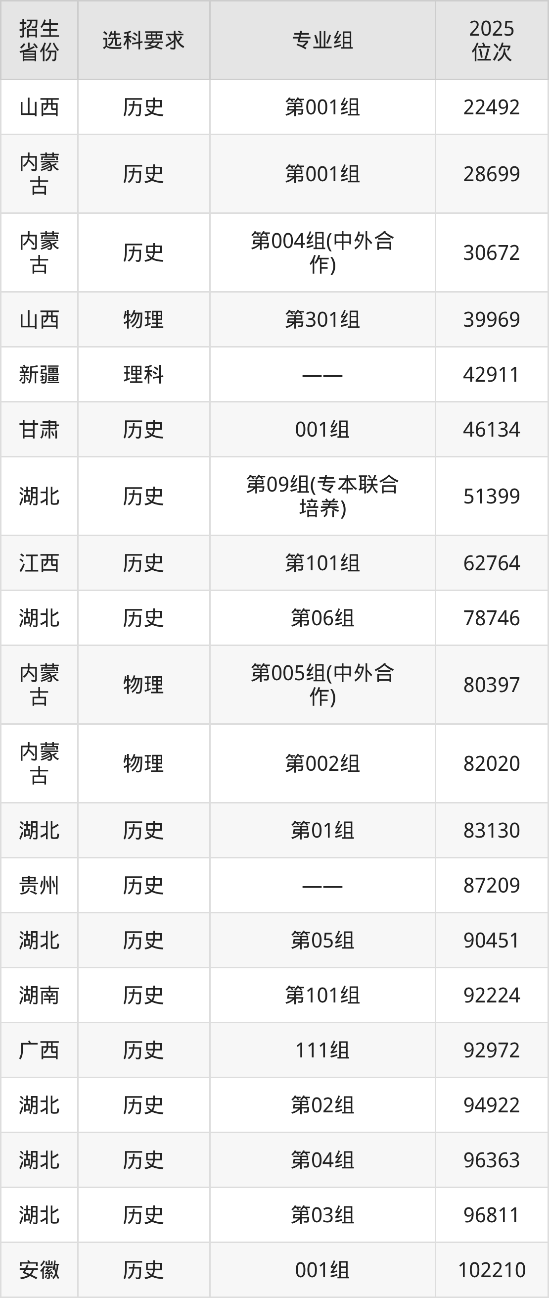 湖北工业职业技术学院2025年在全国各省的位次差异较大,最高位次是22492位(山西历史类)、最低位次是553183位(山东)。各省具体位次请看下图:
