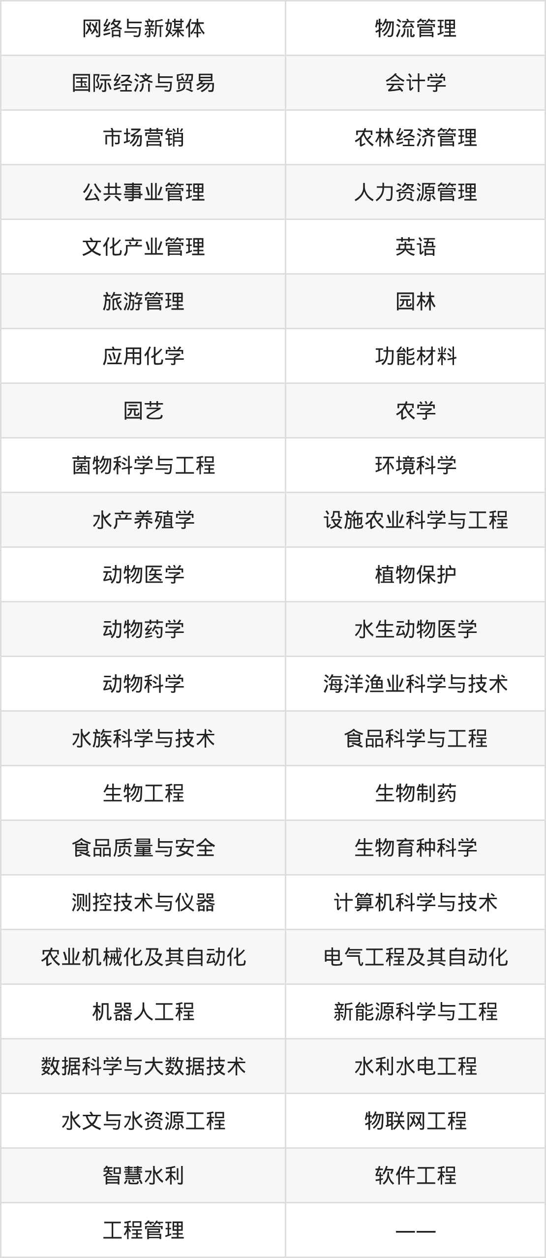 根据2025年天津高考招生计划可知,天津农学院招生专业包含网络与新媒体、物流管理、国际经济与贸易等,完整版名单如下。