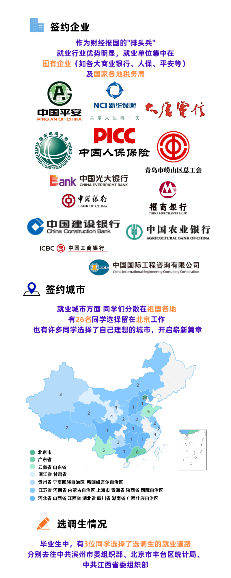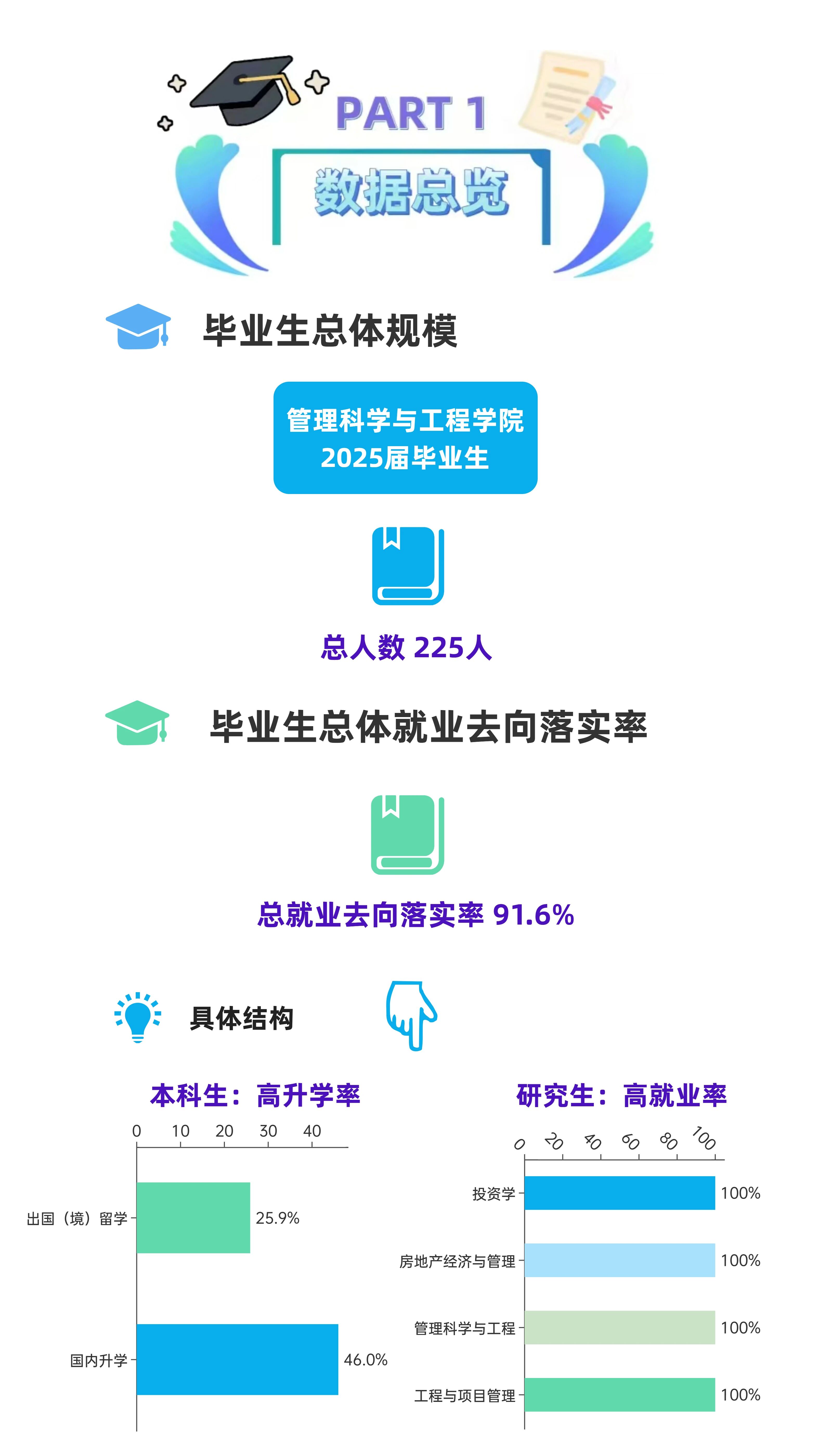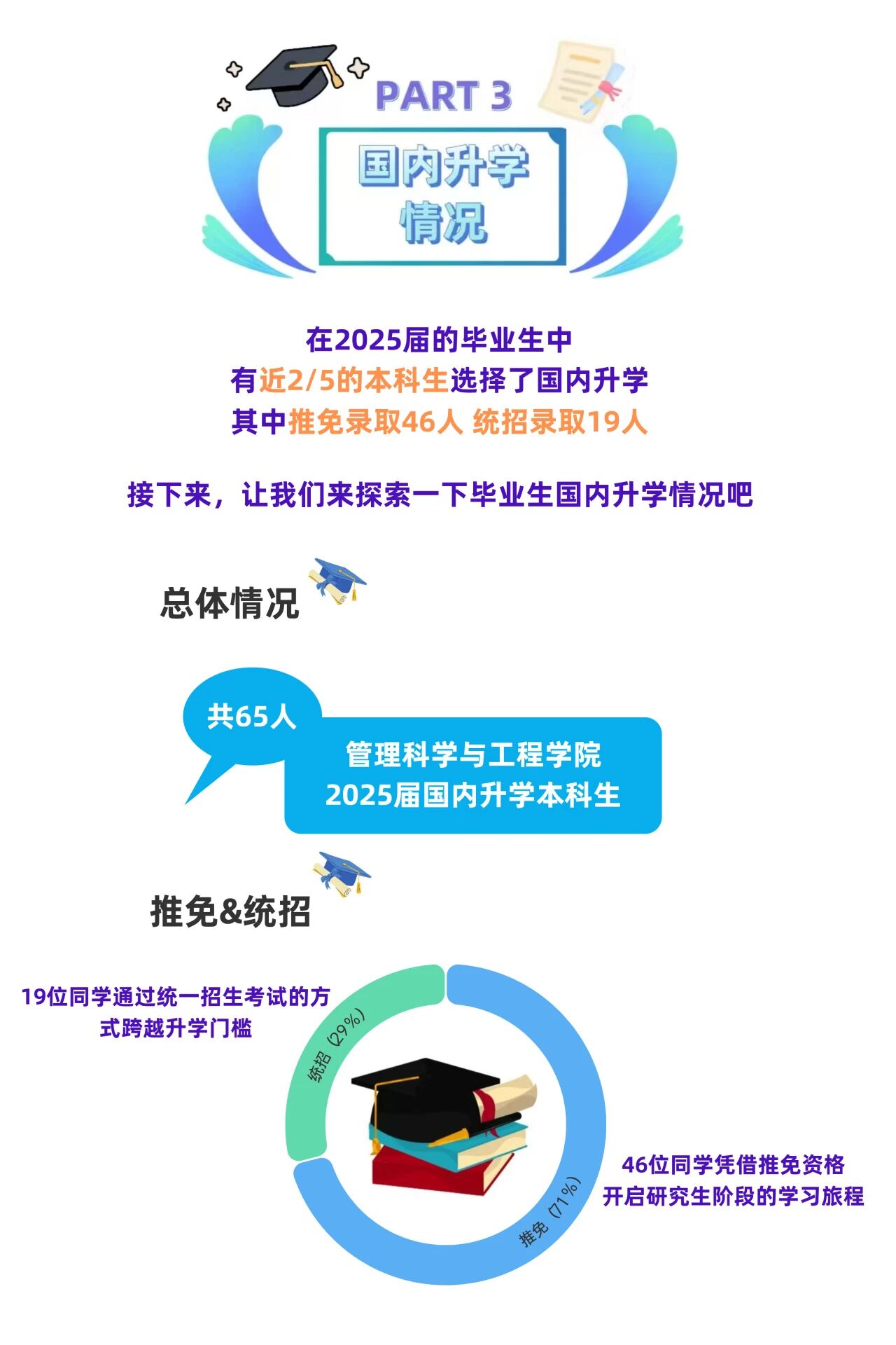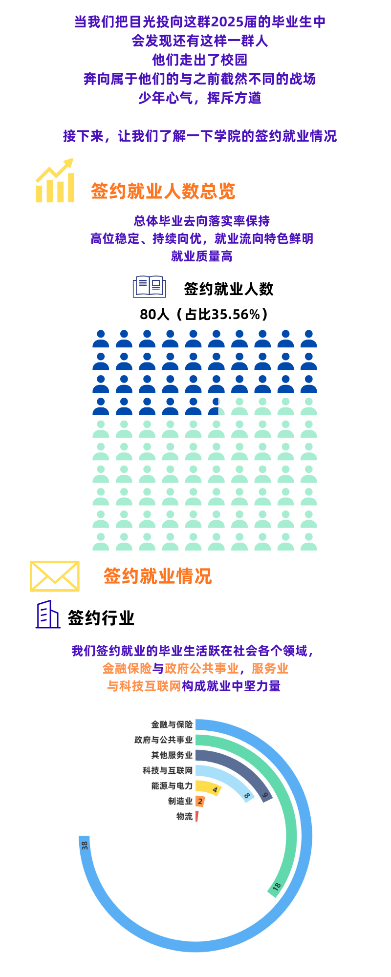 2025届毕业生共计225人!46%的本科生读研升学,部分升学进入清华北大!选择就业的人中,签约企业主要包含国有企业(各大商业银行、人保、平安等)及国家各地税务局。