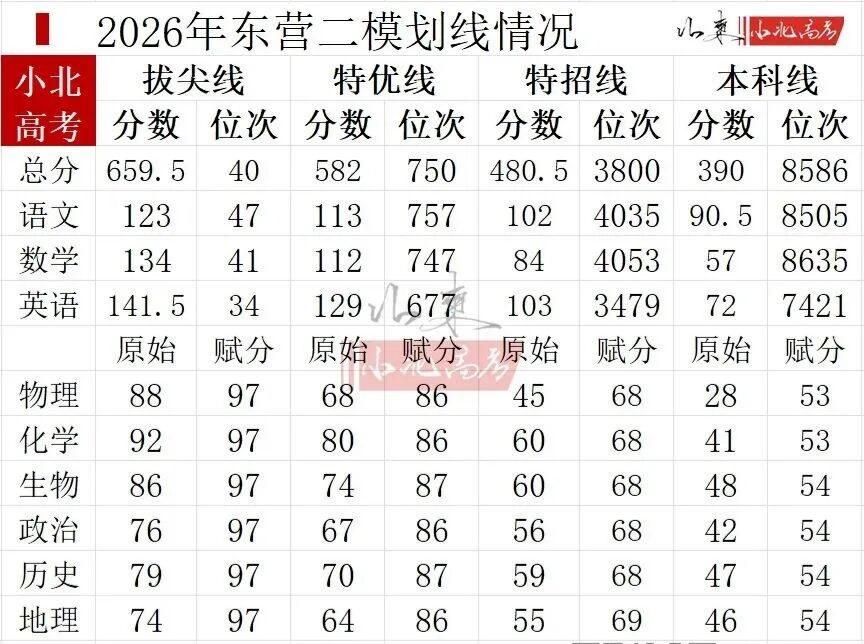 4、2026年东营二模分数线