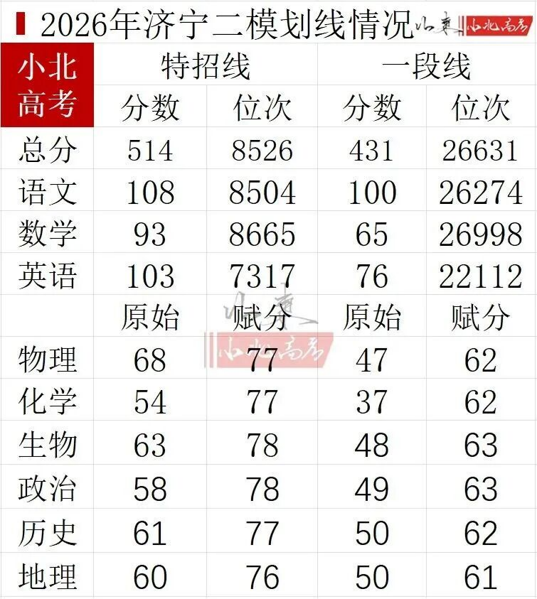 5、2026年济宁二模分数线