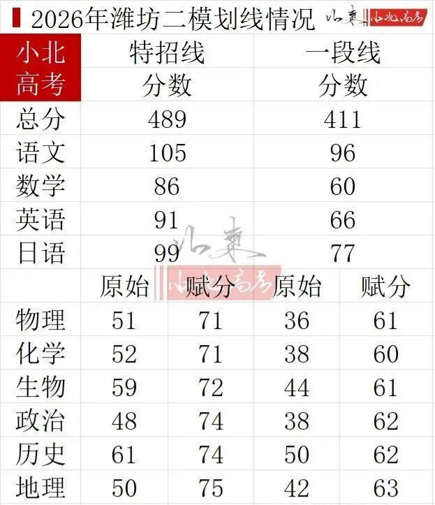 3、2026年潍坊二模分数线