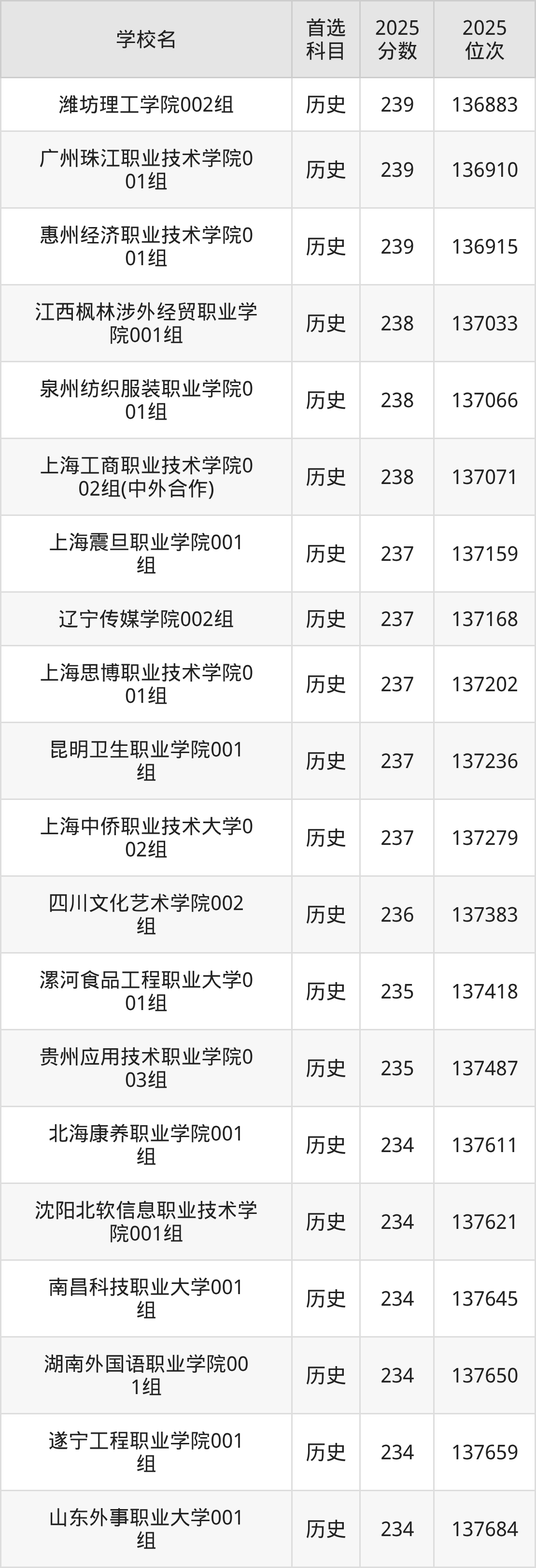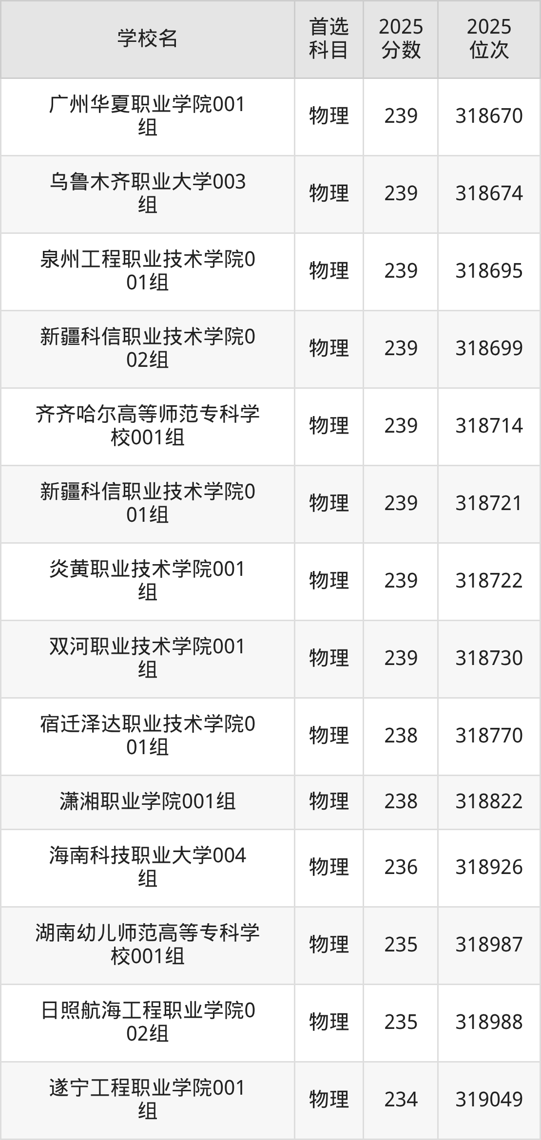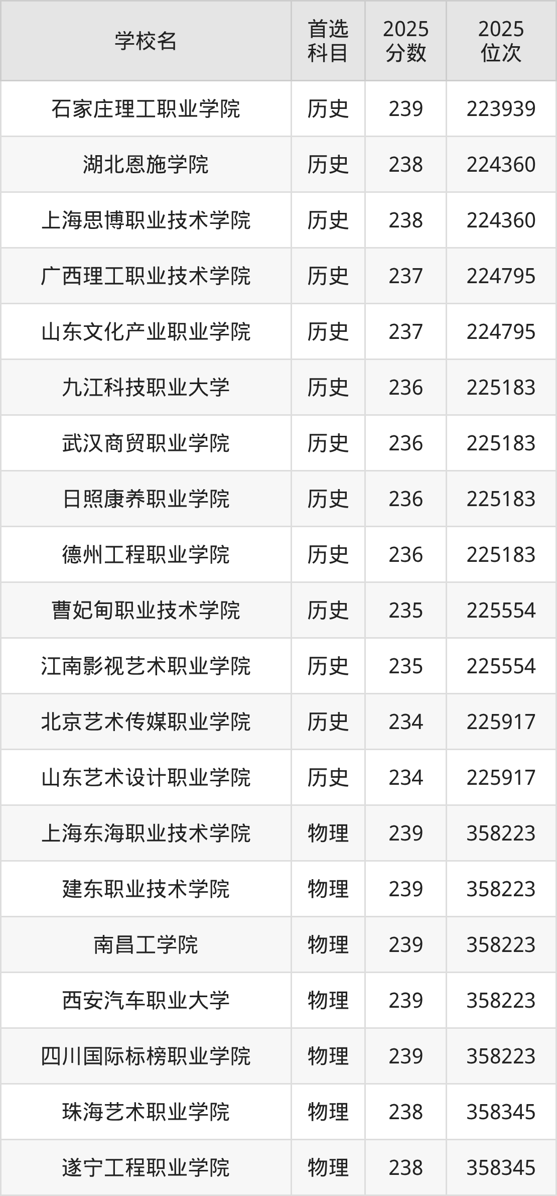 | 学校名 | 首选 科目 | 2025 分数 | 2025 位次 |