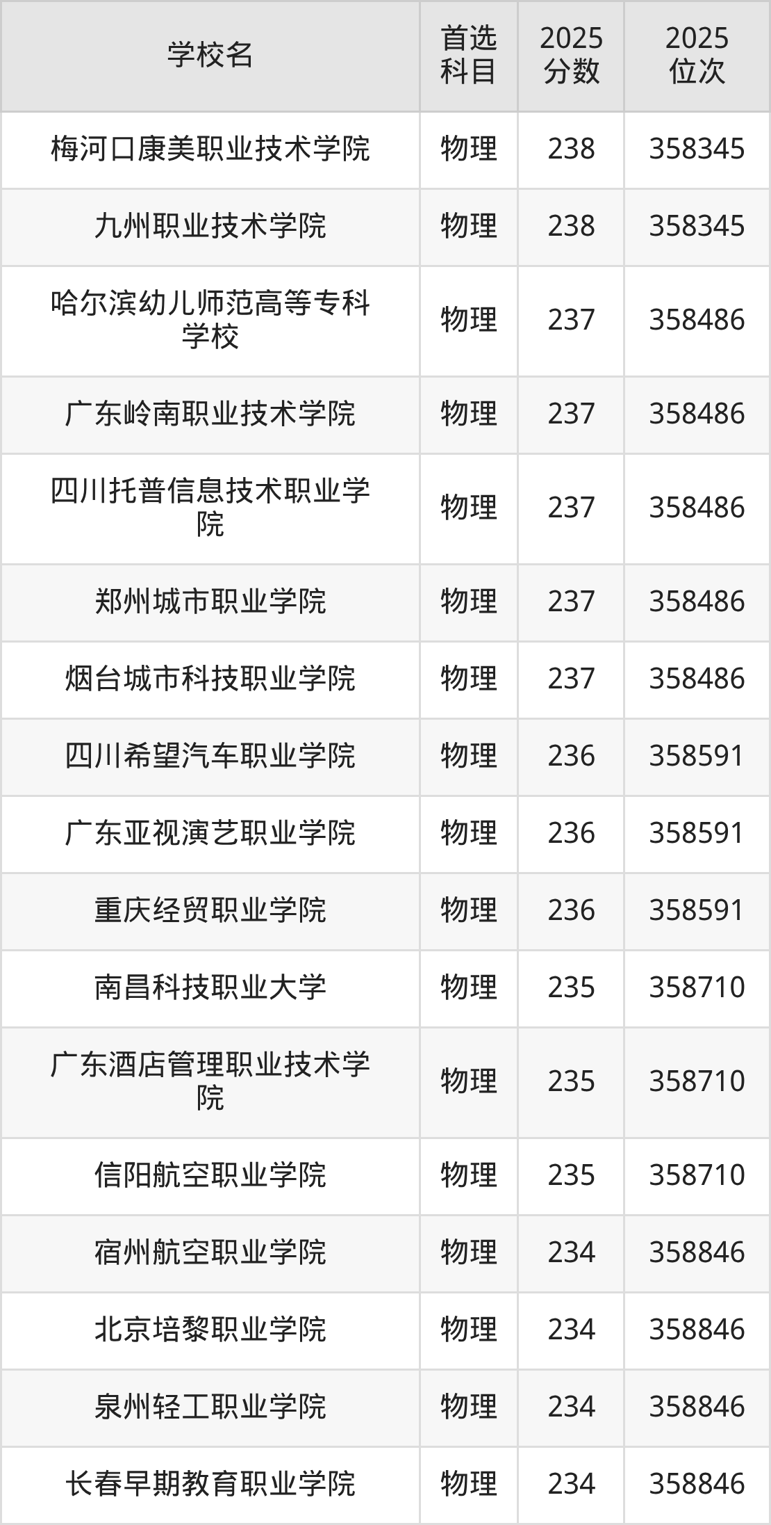 | 海南职业技术学院 | 物理 | 238 | 204238 |