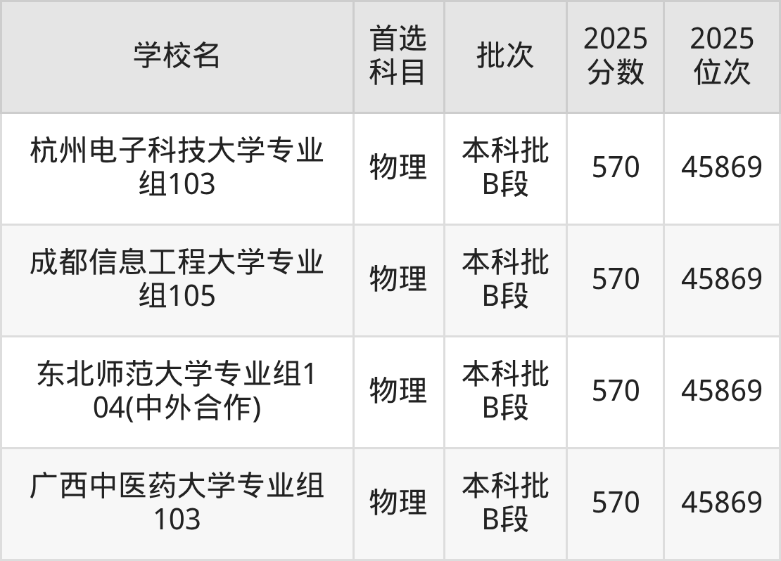 2025年浙江570分对应排名:87149名,因此建议2026年高考位次在8.7万名左右的考生报考这些学校。