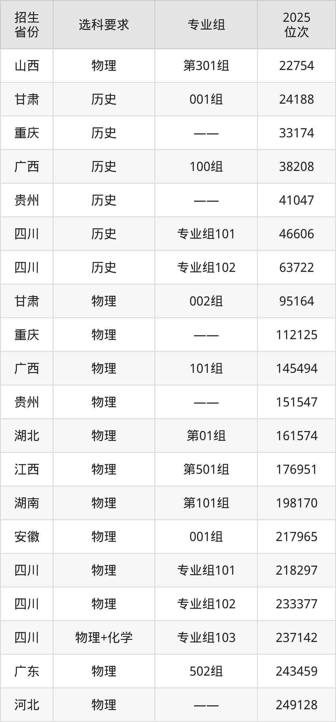遵义医药高等专科学校2025年在全国各省的位次差异较大,最高位次是22754位(山西物理类)、最低位次是397406位(山东)。各省具体位次请看下图: