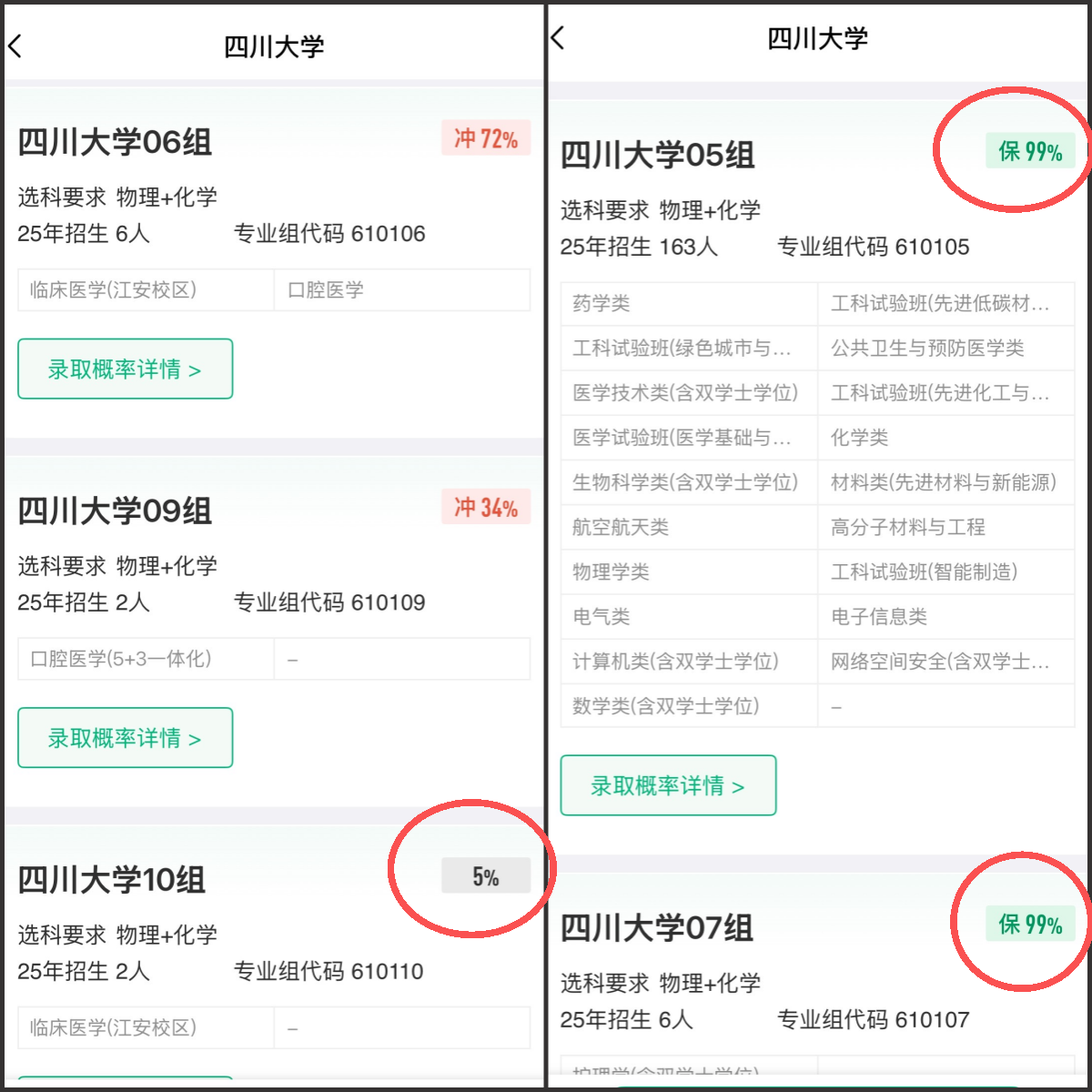 (1)在圆梦志愿APP“测录取概率”功能,输入大学名称(如“四川大学”)。