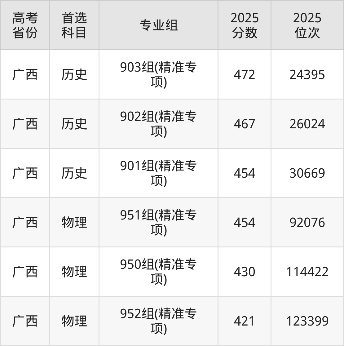 | 高考 省份 | 专业组 | 选科要求 | 2025 分数 | 2025 位次 |