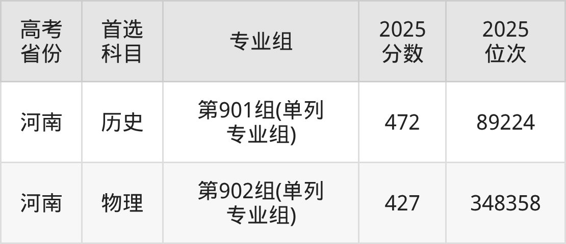 | 高考 省份 | 专业组 | 选科要求 | 2025 分数 | 2025 位次 |