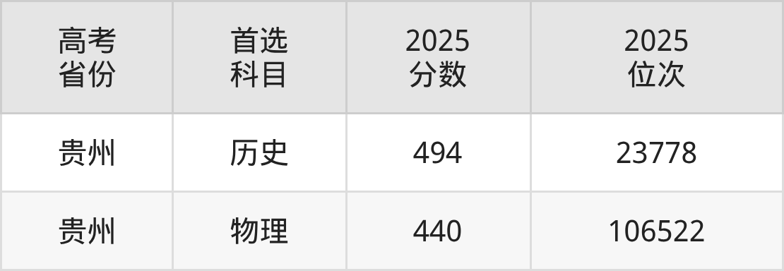 | 贵州 (本 科批) | - | 历史 | 505 | 19751 |