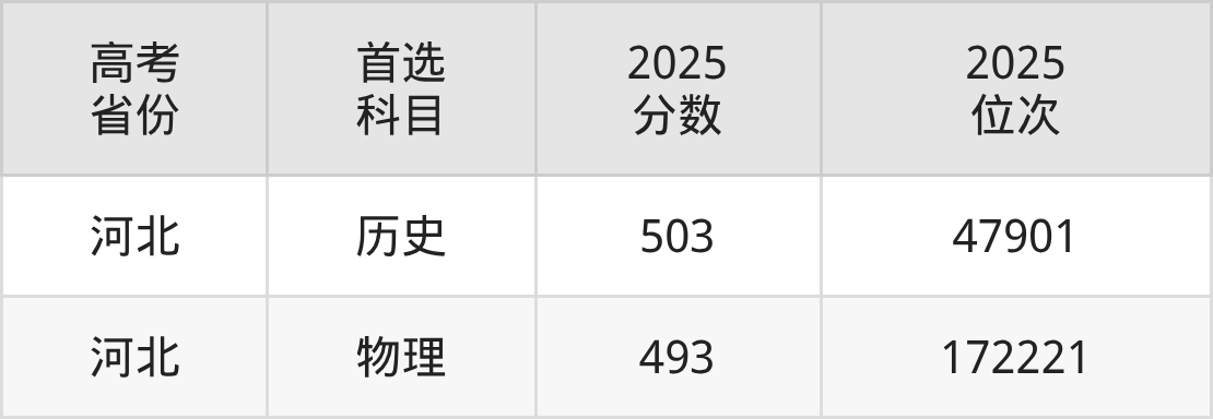 | 高考 省份 | 专业组 | 选科要求 | 2025 分数 | 2025 位次 |