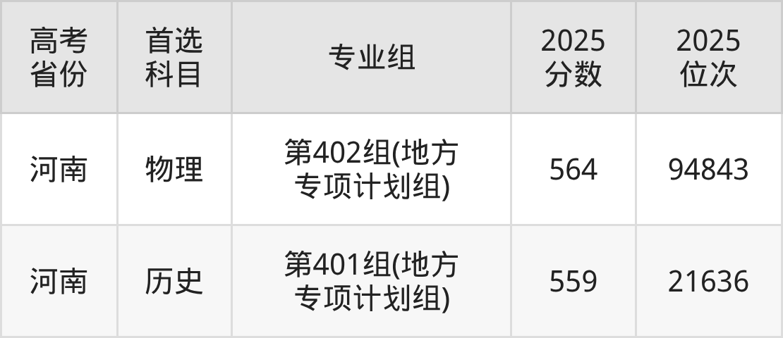 | 高考 省份 | 专业组 | 选科要求 | 2025 分数 | 2025 位次 |