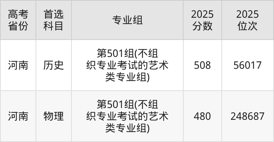 河南:第202组(中外合作办学组)2025年最低477分、254511位,第201组(中外合作办学组)2025年最低447分、311929位