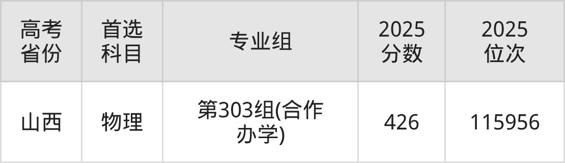 | 高考 省份 | 专业组 | 选科要求 | 2025 分数 | 2025 位次 |